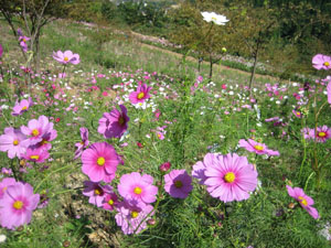今年、はじめてここの山肌に手を加えて、コスモス園にしたそうです。