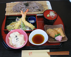 食事、宿泊、温泉がそろっています。ちょうどお昼どき、ソバ定食1000円をたのみました。