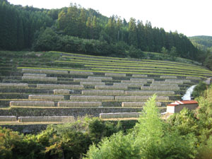 急な山肌に、幾重にも石を積み上げて、天まで届くかのようです。