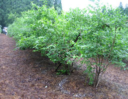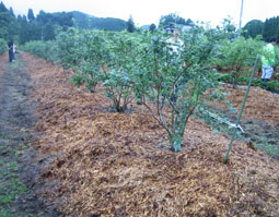 チップを敷き詰めた畑で、ハイブッシュを中心にしたブルーベリーが、元気な枝振りを見せています。とれたてのブルーベリーが入っているマフィンも美味しかったです。