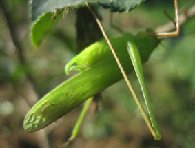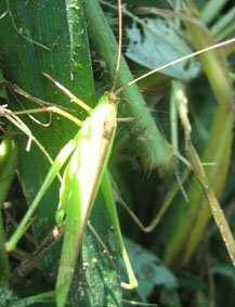 刈り取った草の上に、ウマオイを見つけました。キリギリスの仲間で、馬追虫とも書きます。スイーチョン、スイーチョンと鳴く虫です。