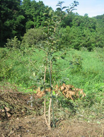 昨年、ブルーベリー園の片隅に、ナンジャモンジャの木を2本植えました。正式には、ヒトツバタゴと呼びます。対馬市の最北端に鰐浦という小さな漁港がありますが、この入江を囲むように小高い山々があります。その山全体に、ヒトツバタゴがたくさん自生していて、天然記念物に指定されています。5月の連休のころになると山全体を真っ白に染めるように花が咲きます。海面を白く照らす様子から、この地方では、「ウミテラシ」と呼ばれています。